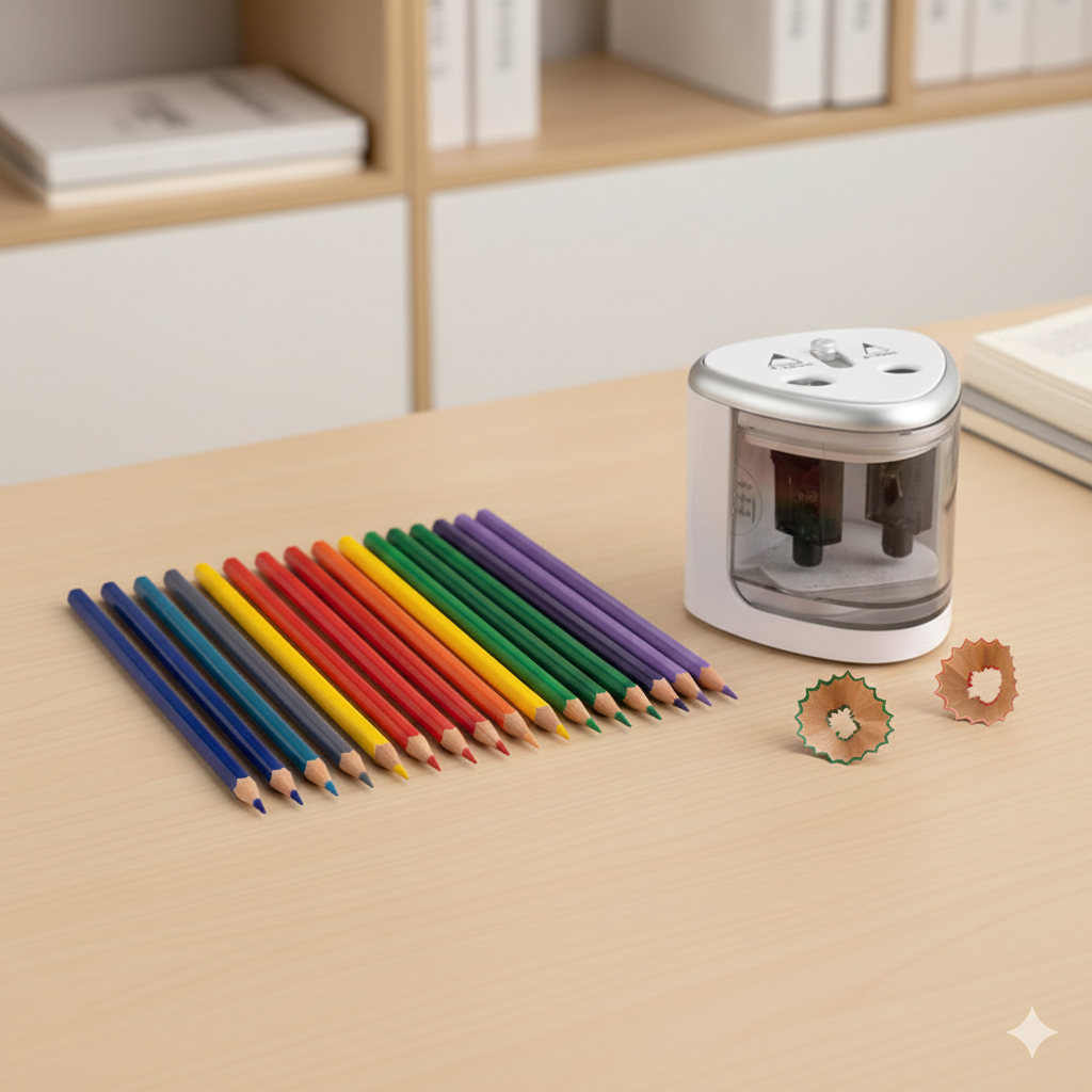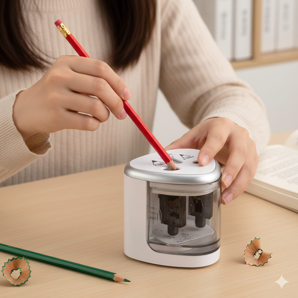 Автоматичний механізм працює з високою точністю, формуючи рівний та симетричний кінчик олівця без сколів і тріщин. Завдяки цьому письмо стає плавним, а малюнки — більш чіткими.