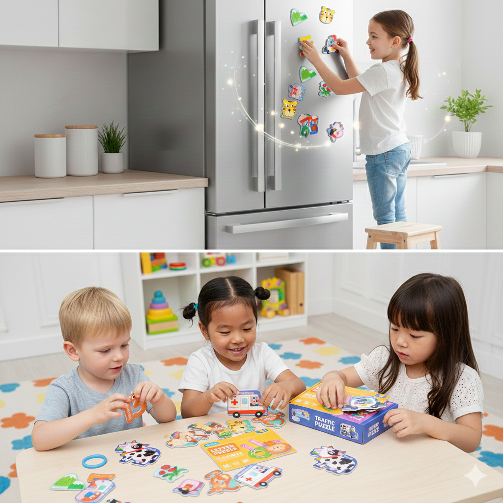 - Міцний та безпечний магнітний PVC/картон із ламінуванням; не токсичний, стійкий до пошкоджень.