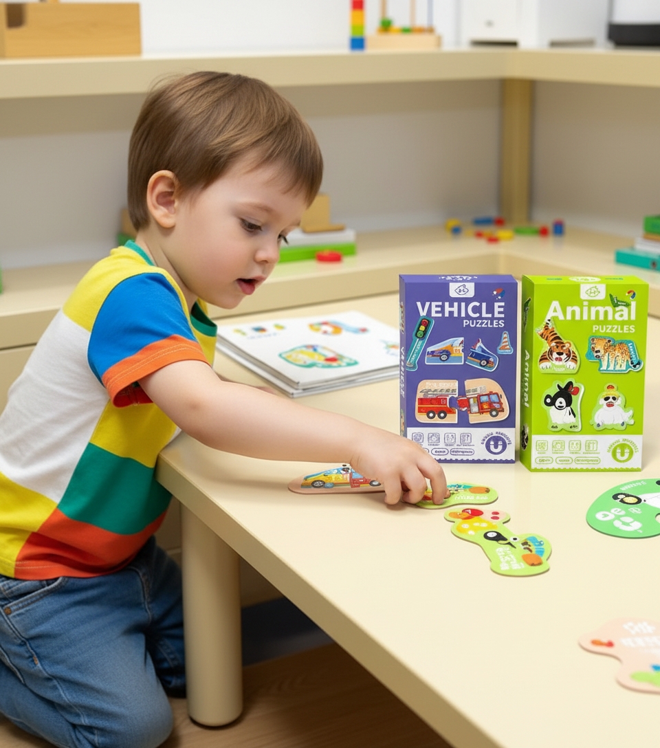Допомагають дитині навчитися співставляти частини та знаходити відповідності, розвиваючи логічне мислення й уважність. Зручний розмір елементів додатково сприяє тренуванню координації рухів і спритності пальчиків.