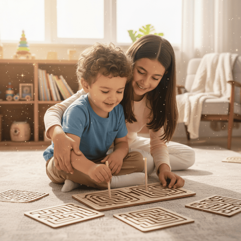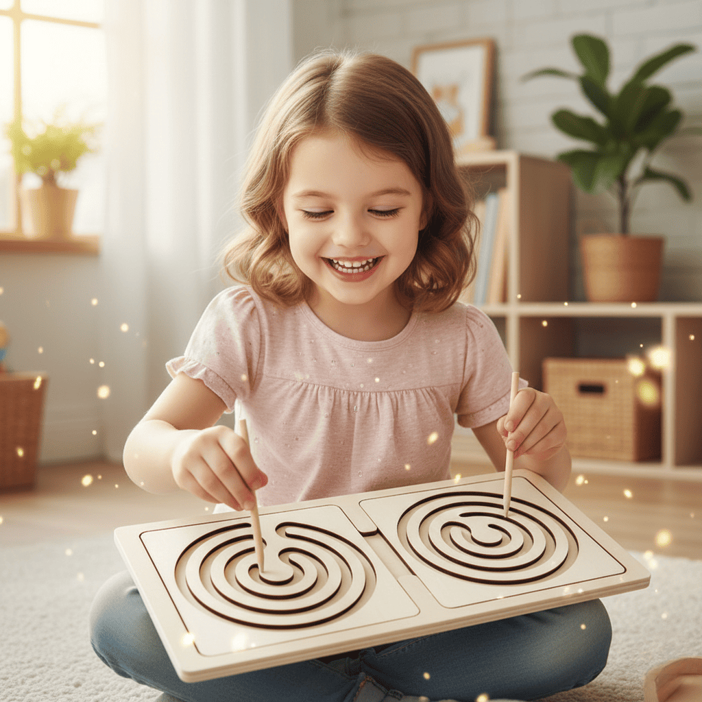 Лабіринти спеціально створені так, щоб дитина працювала двома руками, активуючи одночасно ліву й праву півкулі мозку — основу для логіки, мовлення та творчості.