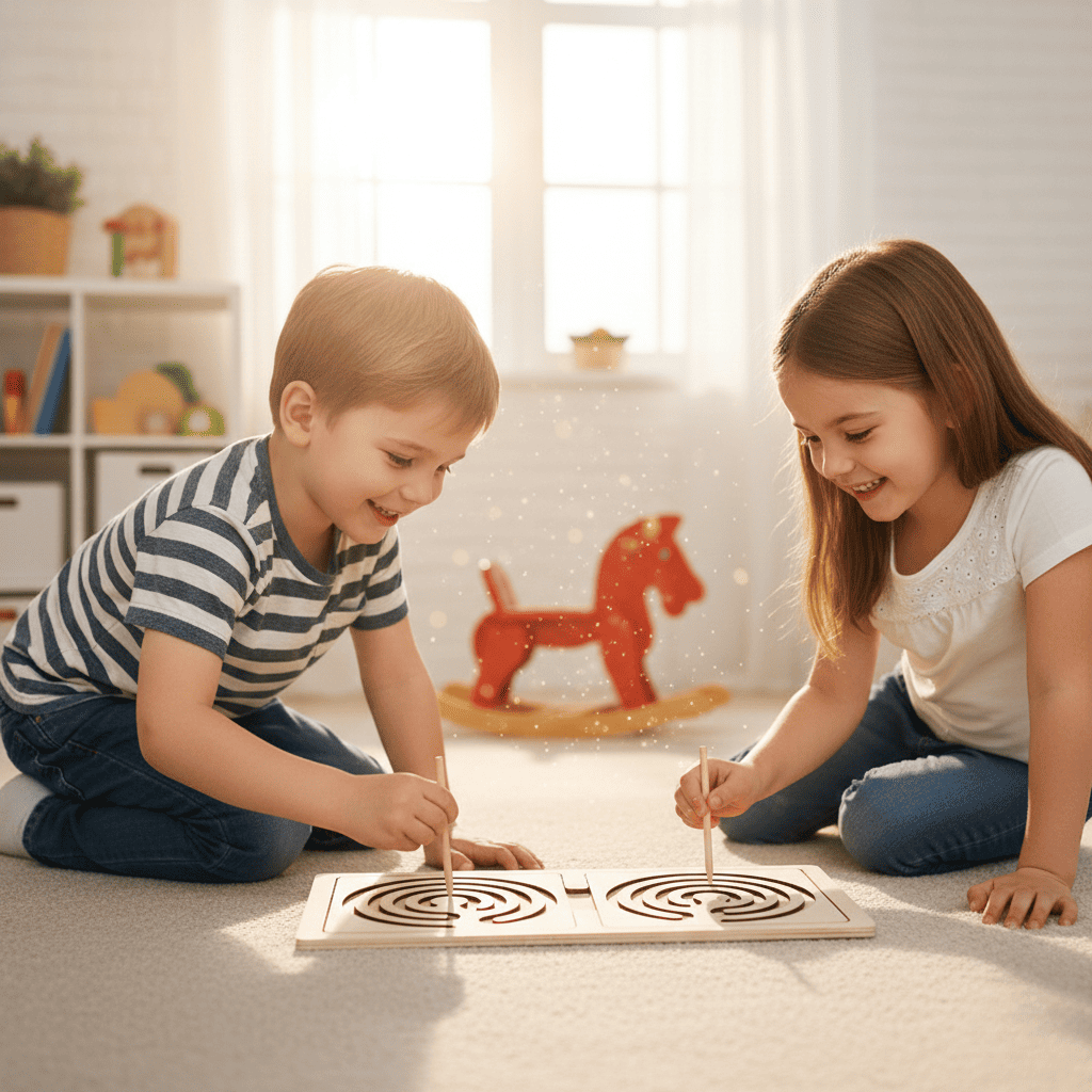Лабіринти можна використовувати по-різному залежно від віку дитини: для найменших — як сенсорну гру та тренування рухів, для старших — як вправу на концентрацію, логіку й координацію, тому набір “росте” разом із дитиною та залишається актуальним тривалий час.