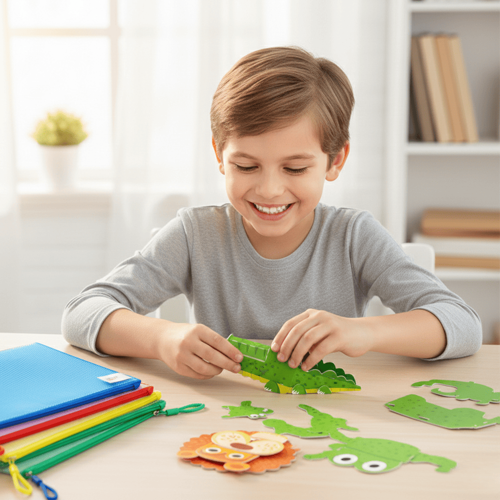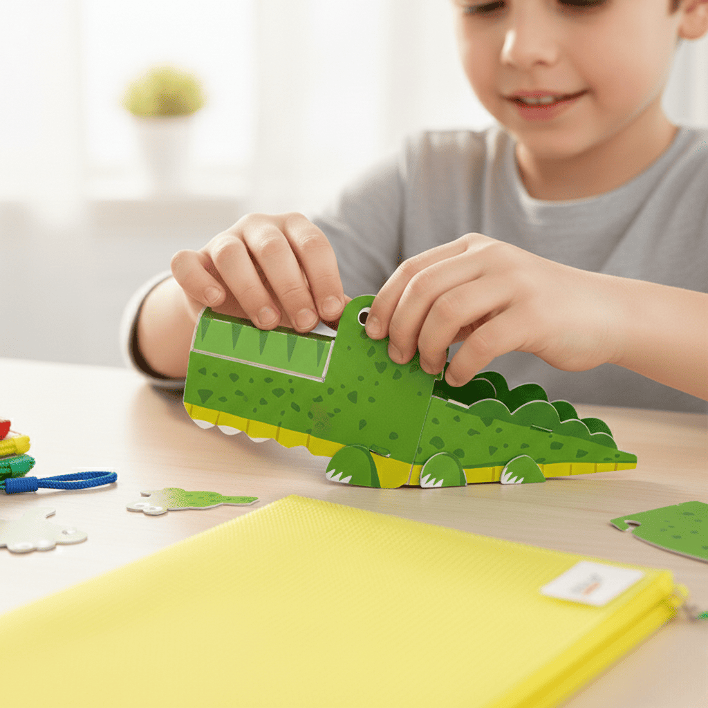 Точні рухи під час з’єднання паперових елементів стимулюють розвиток пальців, що позитивно впливає на мовлення та підготовку до письма.