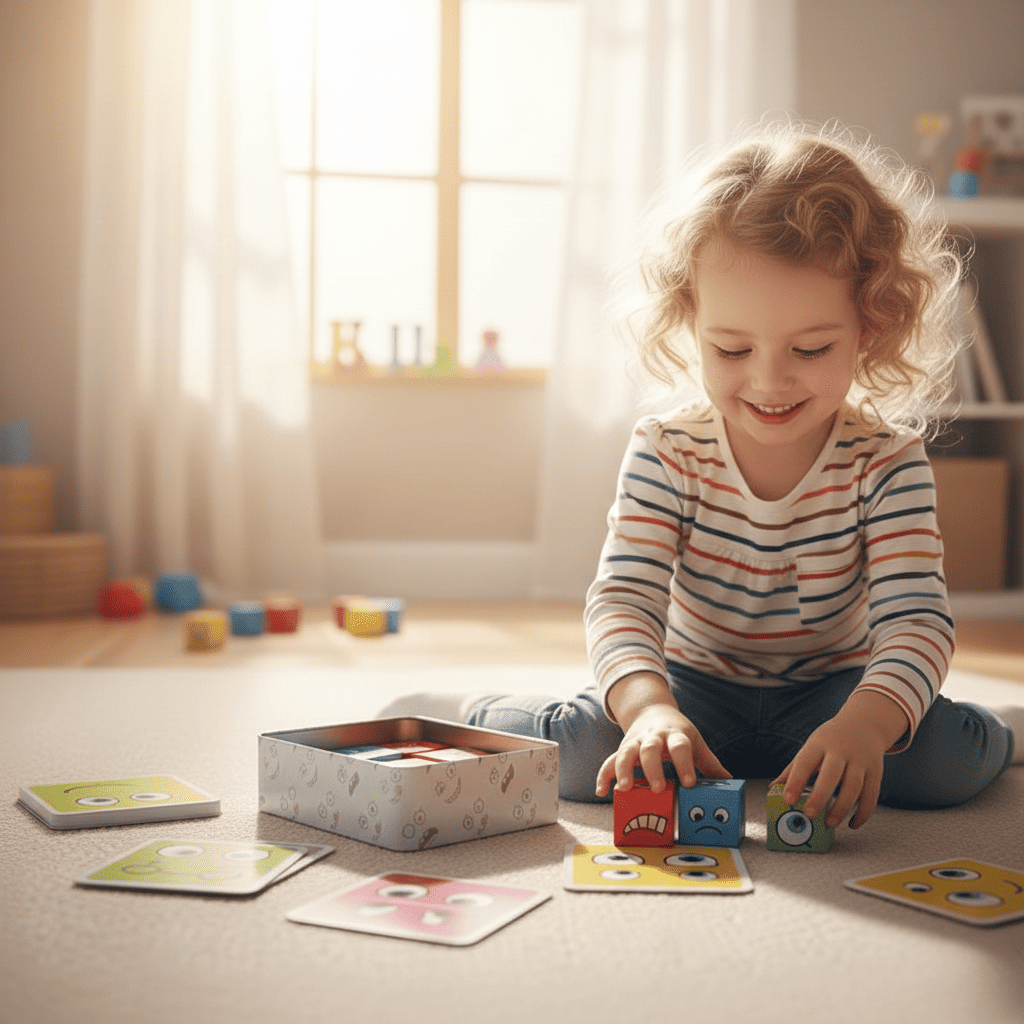 Діти навчаються розпізнавати та називати різні емоції через вирази обличчя. Гра допомагає зрозуміти, що емоції можуть змінюватися, а також що кожен настрій є нормальним. Це формує основу для емпатії та здорової комунікації з іншими.