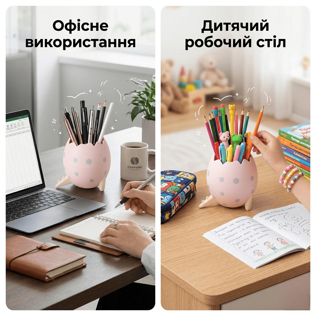 Органайзер підходить не лише для канцелярії, а й для канцелярії, косметики, аксесуарів або навіть як стильний декор. Один предмет — десятки варіантів застосування.