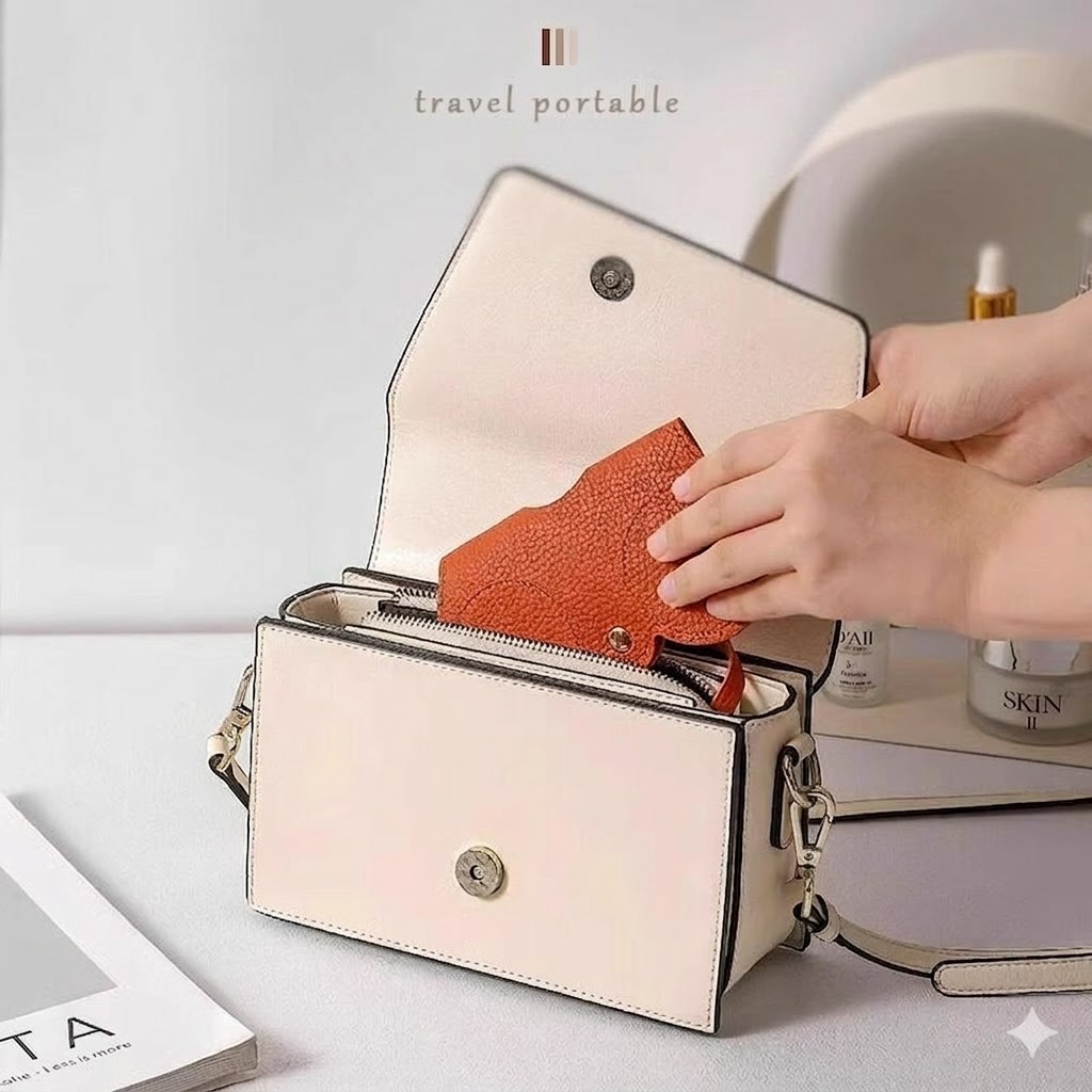 Футляр має невеликий розмір, тому легко поміщається у сумку, рюкзак або навіть кишеню, а завдяки спеціальному кріпленню його можна підвісити зовні — так окуляри завжди під рукою і не займають зайвого місця. Також зручно використовувати в автомобілі: можна закріпити на ручці, дзеркалі або покласти в бардачок для швидкого доступу під час поїздок