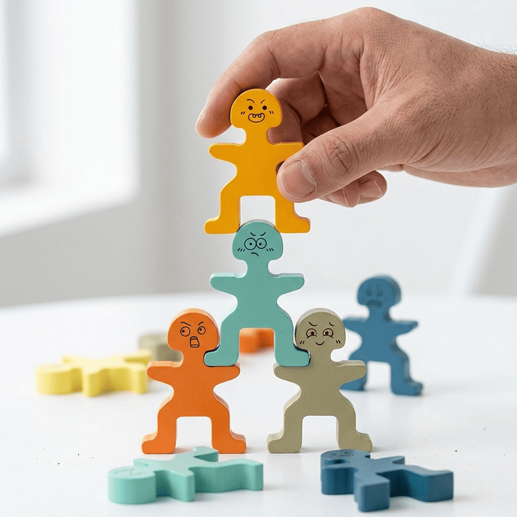 На відміну від звичайних кубиків, ці блоки мають багатогранні зрізи та нетипові кути. Це змушує дитину щоразу шукати нову точку опори, підбираючи ідеальну площину для стикування деталей, що розвиває нестандартне інженерне мислення.