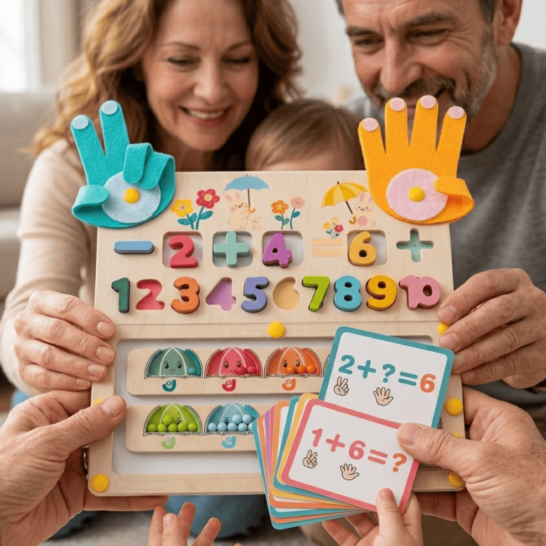 Гра допомагає дитині перетворити абстрактні цифри на зрозумілу кількість предметів. Використовуючи фетрові пальчики, дерев'яні фігурки та магнітні кульки одночасно, дитина бачить і відчуває склад кожного числа.
